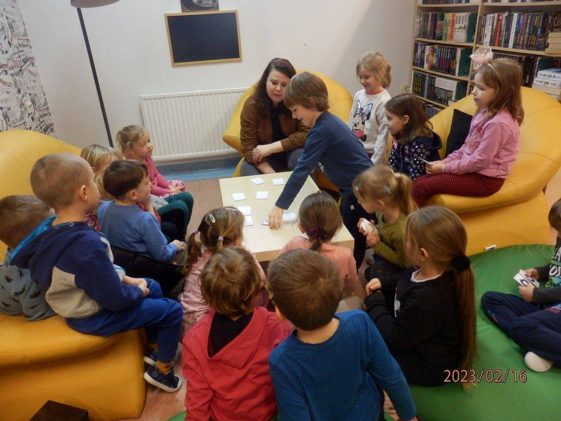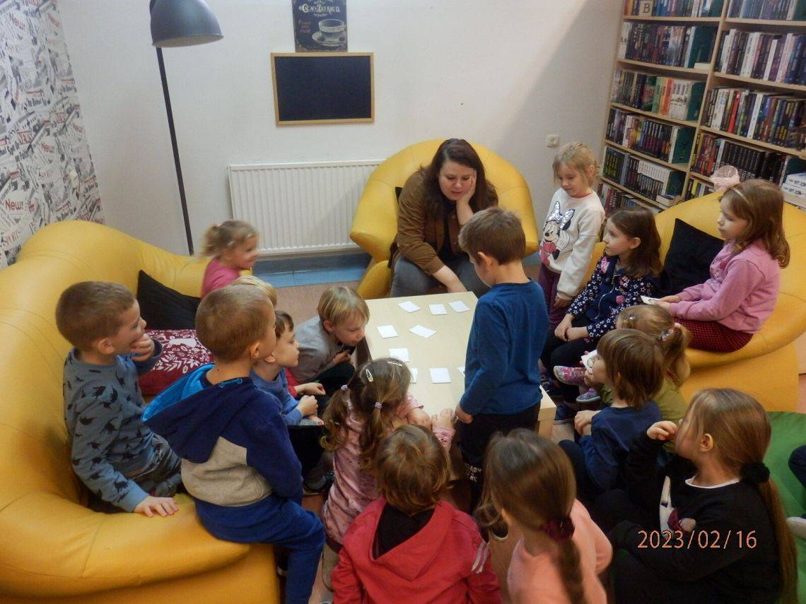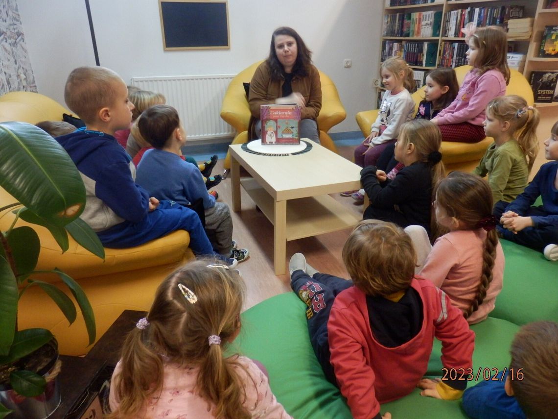 Dziś, w „tłusty czwartek” przedszkolaki z grupy Pani Żanety zostały zaproszone do biblioteki na słodką, ale… bezkaloryczną ucztę literacką.