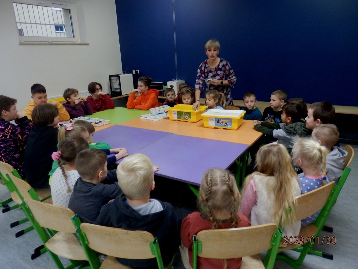Za nami kolejne spotkanie w ramach projektu „Sensoryczny kogel – mogel”. Dzisiaj, wraz z przedszkolakami z grupy 0B, Panią Dyrektor i miłośnikami lego z klasy 6 b, odbyliśmy bardzo kreatywne warsztaty w „laboratorium przyszłości”. Sali wyposażonej w nowoczesny sprzęt dydaktyczny dla uczniów, pozyskany z projektu Laboratoria Przyszłości.