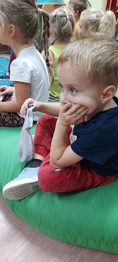 Lekturą „Niesamowite przygody dziesięciu skarpetek” Justyny Bednarek rozpoczęliśmy, we współpracy z Biblioteką Publiczną, projekt „Sensoryczny kogel – mogel”. Odbiorcy projektu, przedszkolaki z grupy 0E, wysłuchały opowieści o skarpetce...która wygrała casting i zrobiła karierę filmową, a następnie wykonały swoje skarpetkowe stworki. Wszystkie piękne jak gwiazdy filmowe!