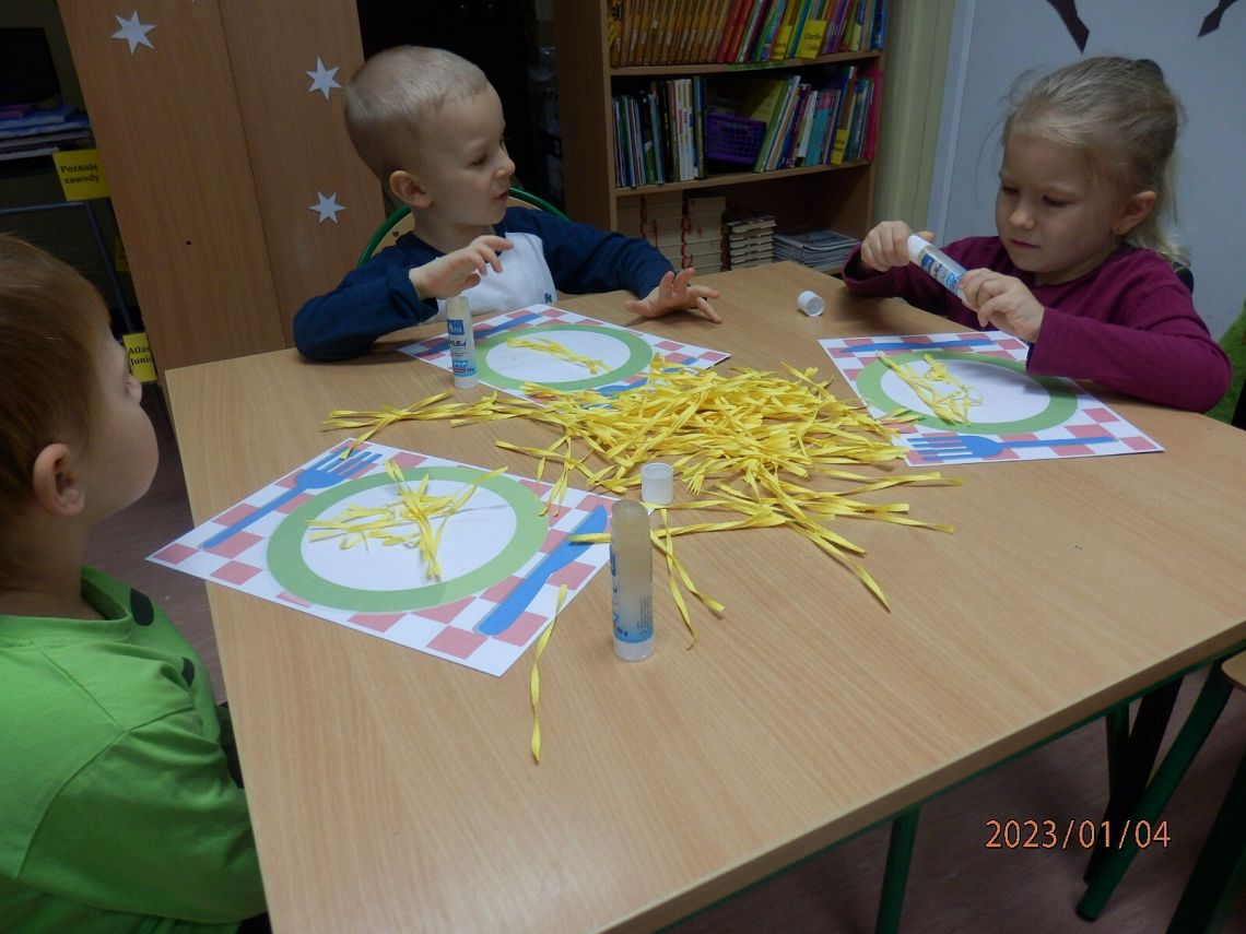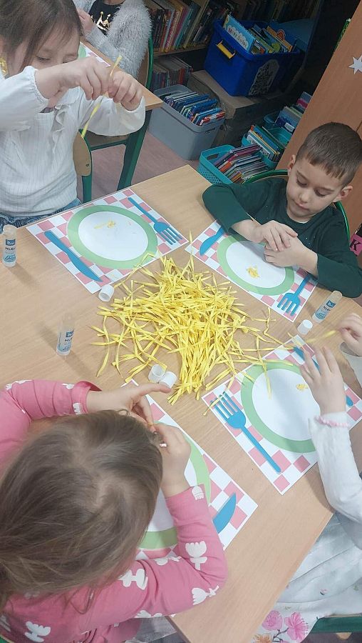 Sensoryczny kogel - mogel. Spotkanie z przedszkolakami z grupy 0E z okazji Dnia Spaghetti
