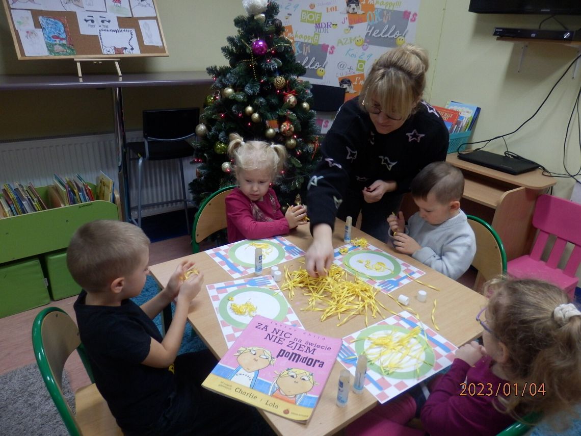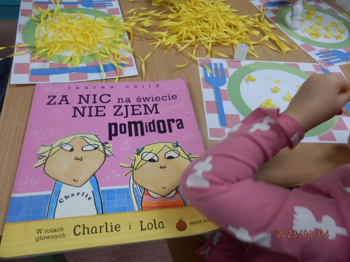 Na początku spotkania dzieci poznały historię Loli, bohaterki książki „Charlie i Lola. Za nic na świecie nie zjem pomidora”. Następnie wywiązała się dyskusja na temat ich upodobań kulinarnych i prawie wszystkie maluchy stwierdziły, że uwielbiają spaghetti!...