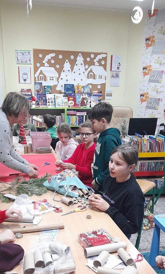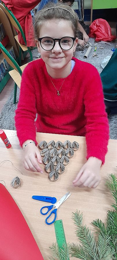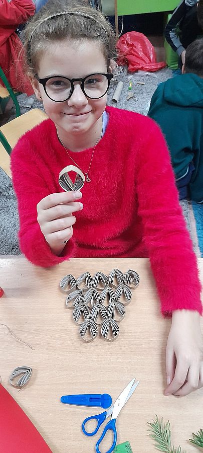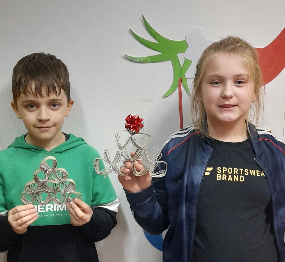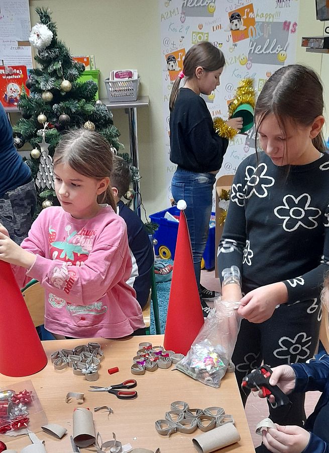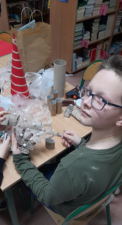 Podczas warsztatów rolki od papieru oraz brystol stały się głównym surowcem do stworzenia niezwykłych ozdób świątecznych. Uczniowie z pasją oraz precyzją wykorzystywali papier, tworząc przy tym niepowtarzalne kompozycje. Efekty prac uczniów były zachwycające, nie tylko dla organizatorów, ale zapewne także dla obdarowanych tym pięknym rękodziełem.