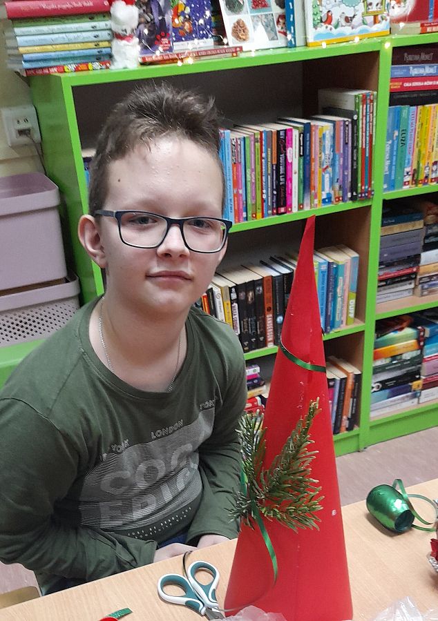 W przedświątecznej atmosferze uczniowie klasy 4 b wzięli udział w warsztatach zorganizowanych w bibliotece. Prowadzącą warsztaty była pani Alicja Godzisz z Łęczyc, miłośniczka rękodzieła, znana ze swojego zaangażowania w rozwijanie talentów najmłodszych. Zadaniem uczestników było stworzenie własnych, unikatowych choinek, wykorzystując do tego celu różne materiały.