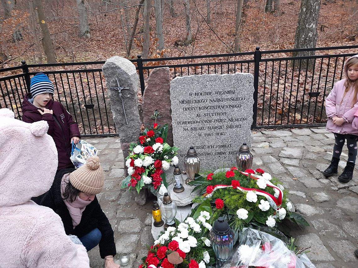 W dniu dzisiejszym klasa 3 b wraz z panią bibliotekarką odwiedziły wyremontowane i niedawno na nowo otwarte miejsce pamięci ofiar Marszu Śmierci więźniów niemieckiego obozu koncentracyjnego Stutthof.