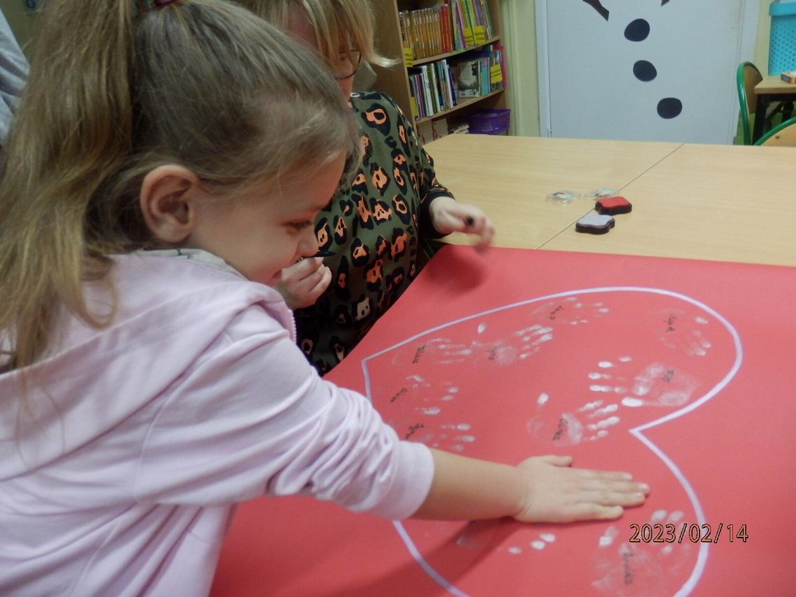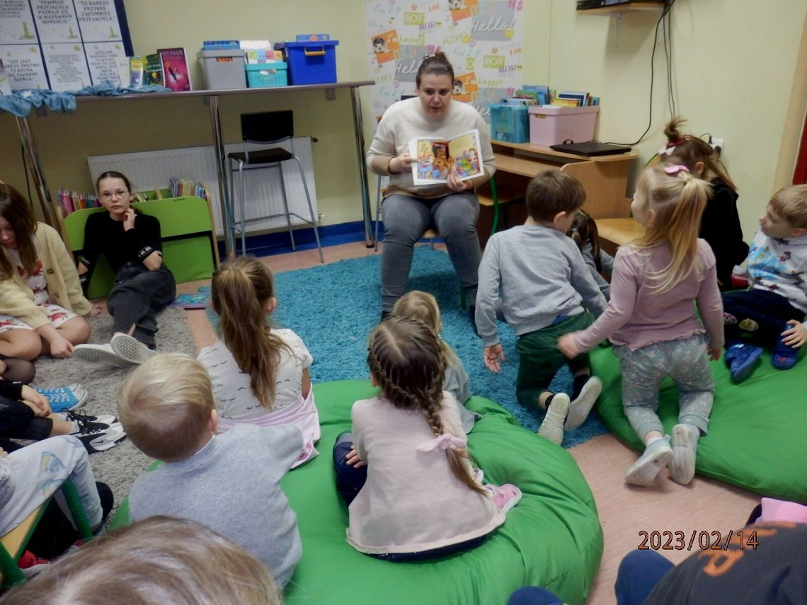 Dziewczyny z kółka bibliotecznego zaprezentowały maluchom wiersze o tematyce walentynkowej, Pani Agnieszka przeczytała książkę o tym, jak Franklin przygotowywał dla swoich przyjaciół kartki walentynkowe...a na koniec zajęć...to dopiero była niespodzianka. Pani Kornelia zaproponowała dzieciom wykonanie walentynki w formacie XXL. Efekty oceńcie sami ! Zapraszamy do galerii zdjęć.
