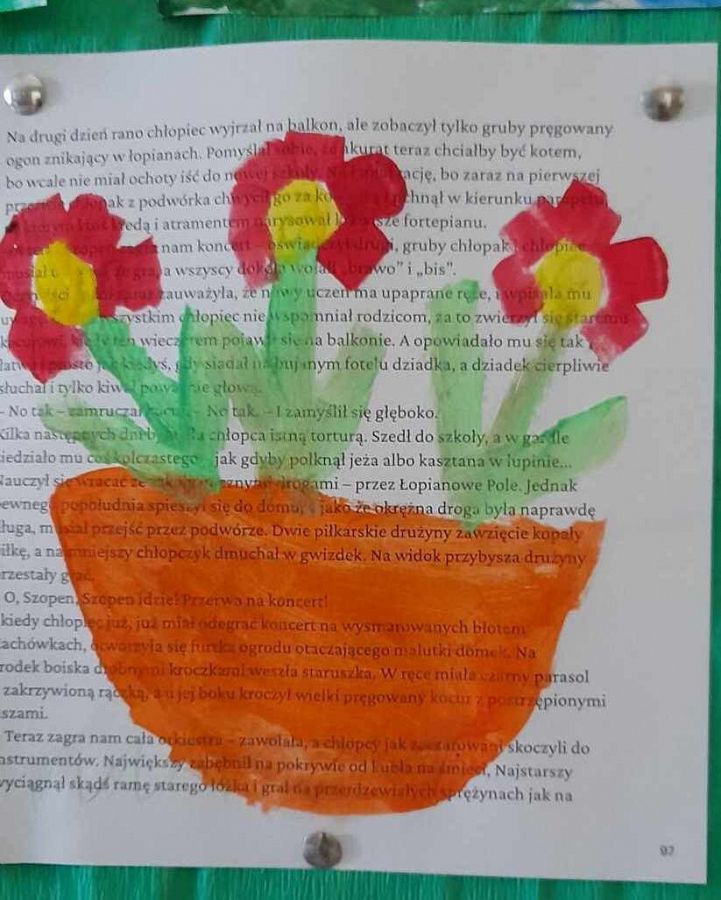 W ramach projektu uczniowie wykonali zielniki. Na kartkach ze starych książek malowali kwiaty i inne rośliny. Dzięki temu powstały piękne, ręcznie zdobione zielniki, które łączą w sobie elementy recyklingu i sztuki. Zielnik wyeksponowano na korytarzu szkolnym.