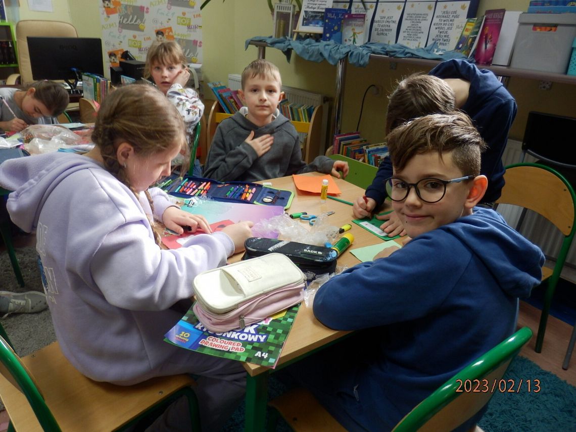 Jakie prezenty na Walentynki są najlepsze ? Oczywiście wykonane własnoręcznie! Walentynkową niespodziankę, zrobioną według pomysłu Marceliny, Mai i Oliwii z klasy 5 b wykonali dzisiaj uczniowie z klasy 3 b. Pięknie wykonane torebki ze słodkimi niespodziankami w środku, z pewnością wywołają jutro uśmiechy na twarzach obdarowanych osób.