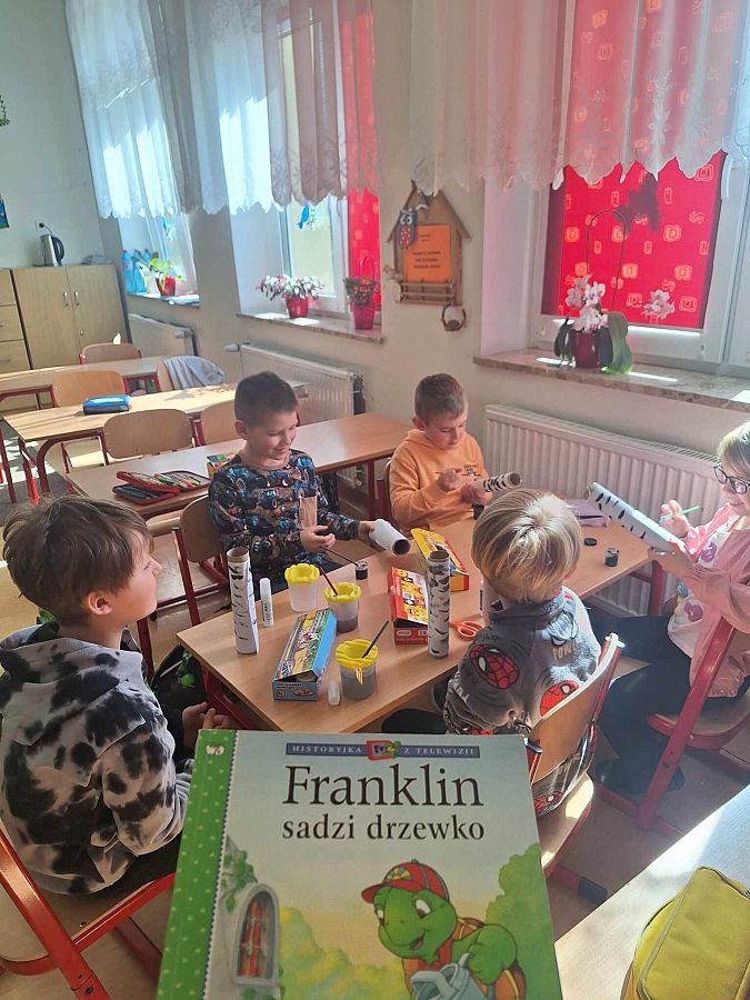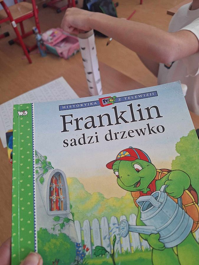 W ramach projektu edukacyjnego "Książka o każdej porze roku" dzieci z klasy I a omówiły wiosenny moduł. Tym razem poznały książkę o Franklinie, który postanowił posadzić drzewo.