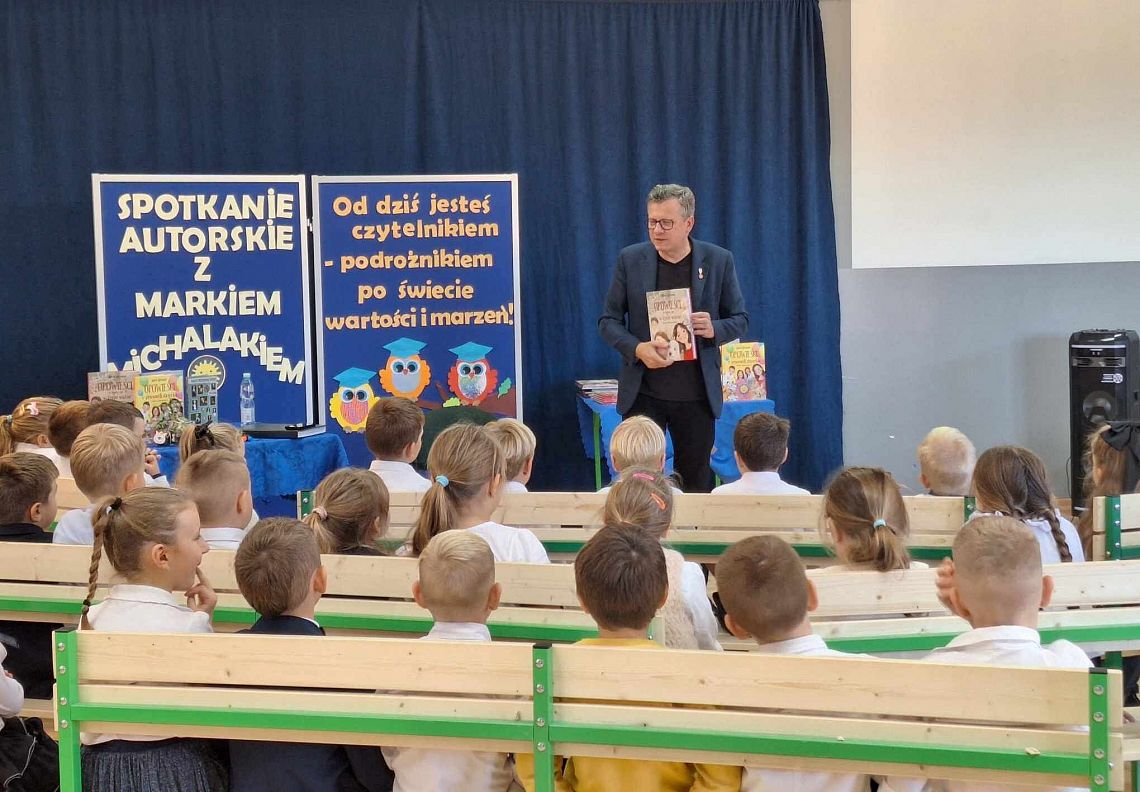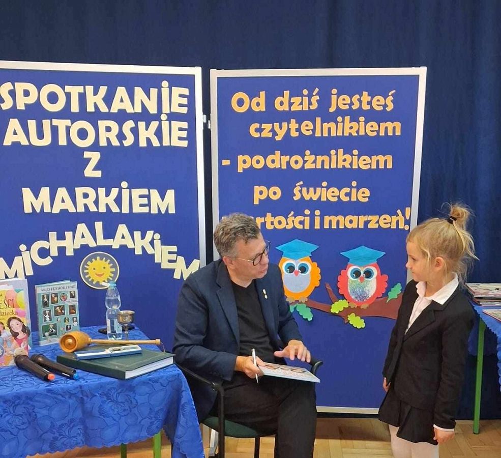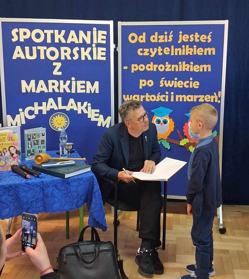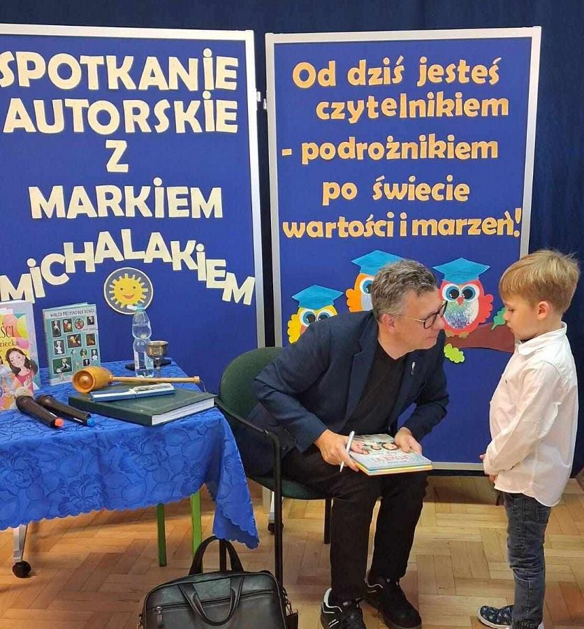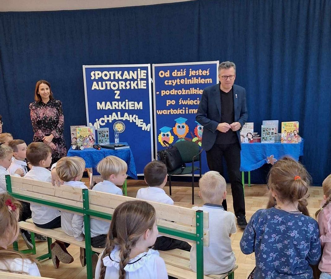 Dziś w naszej szkole odbyło się niezwykłe wydarzenie – spotkanie autorskie z Markiem Michalakiem, byłym Rzecznikiem Praw Dziecka, Kawalerem Orderu Uśmiechu, a przede wszystkim autorem książek dla dzieci! Spotkanie miało wyjątkowy charakter, ponieważ było połączone z uroczystym pasowaniem uczniów klas 1 na czytelników biblioteki szkolnej.