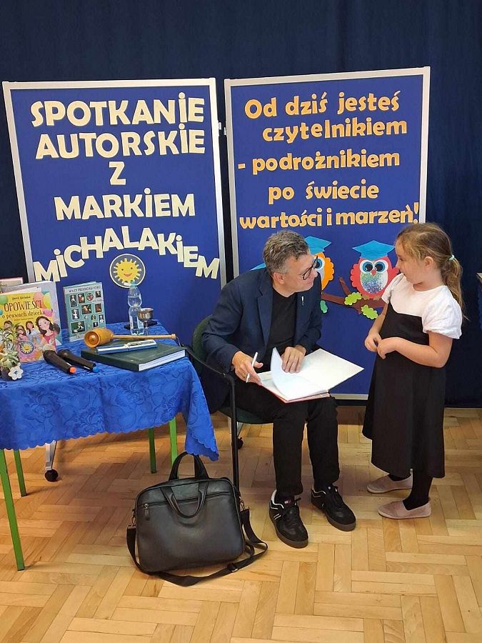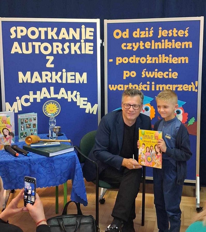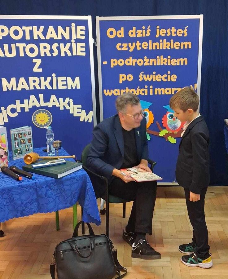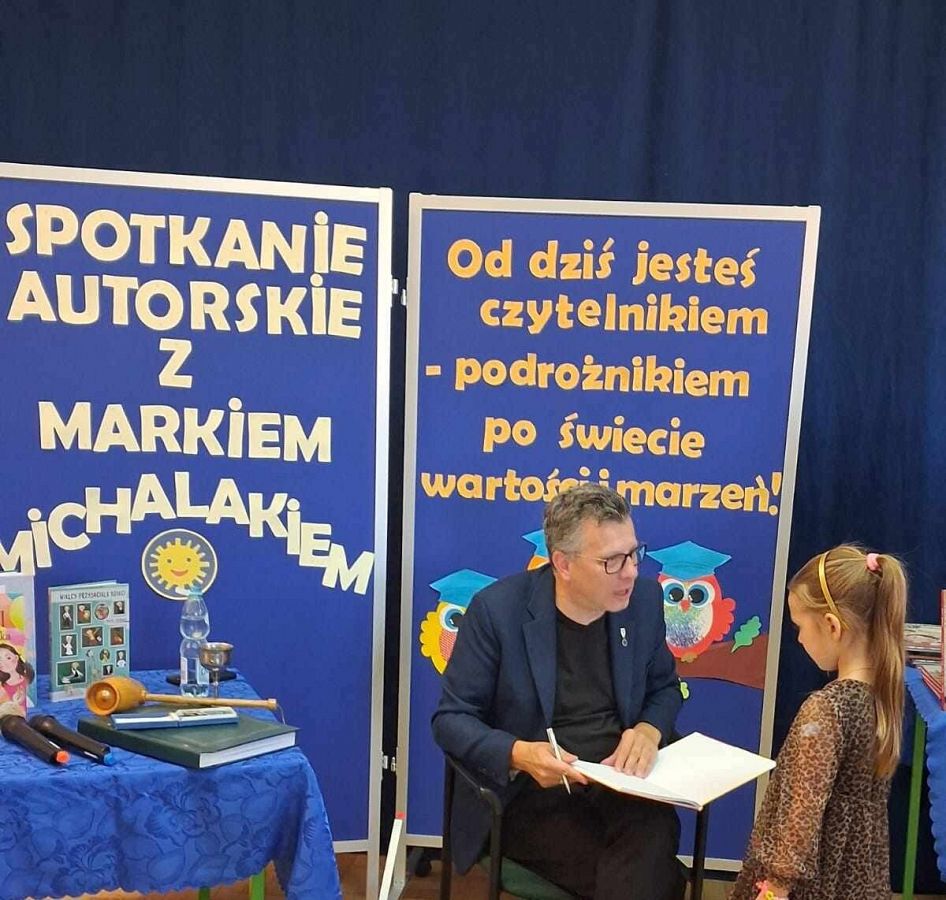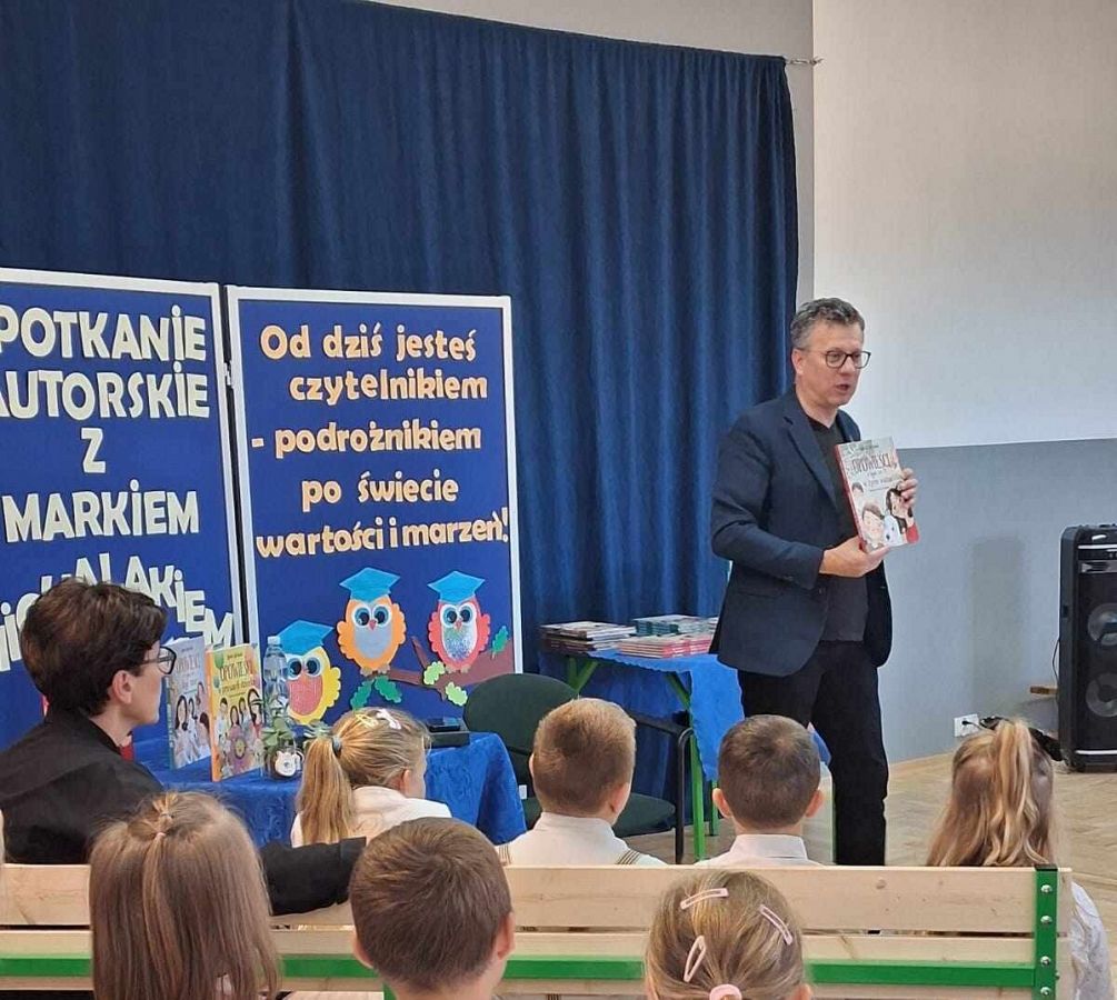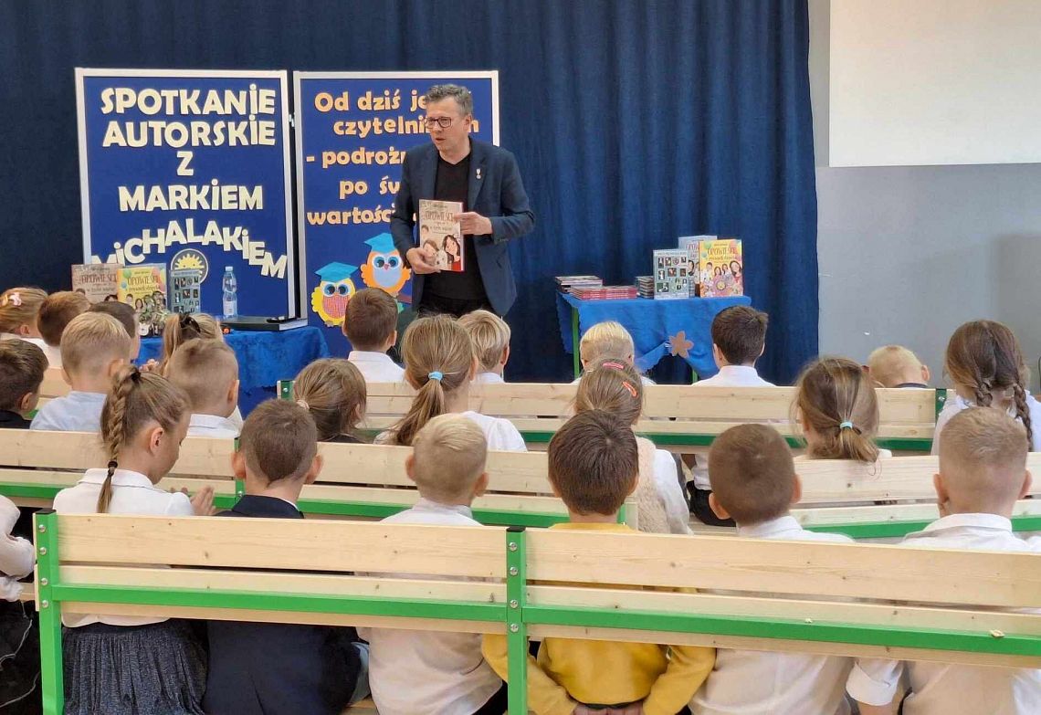 Dziś w naszej szkole odbyło się niezwykłe wydarzenie – spotkanie autorskie z Markiem Michalakiem, byłym Rzecznikiem Praw Dziecka, Kawalerem Orderu Uśmiechu, a przede wszystkim autorem książek dla dzieci! Spotkanie miało wyjątkowy charakter, ponieważ było połączone z uroczystym pasowaniem uczniów klas 1 na czytelników biblioteki szkolnej.