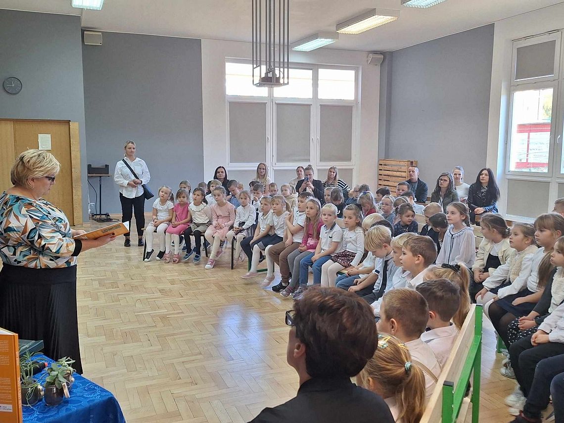 Podczas spotkania odbyło się także pasowanie na czytelnika – pierwszoklasiści złożyli symboliczną przysięgę szanowania książek: