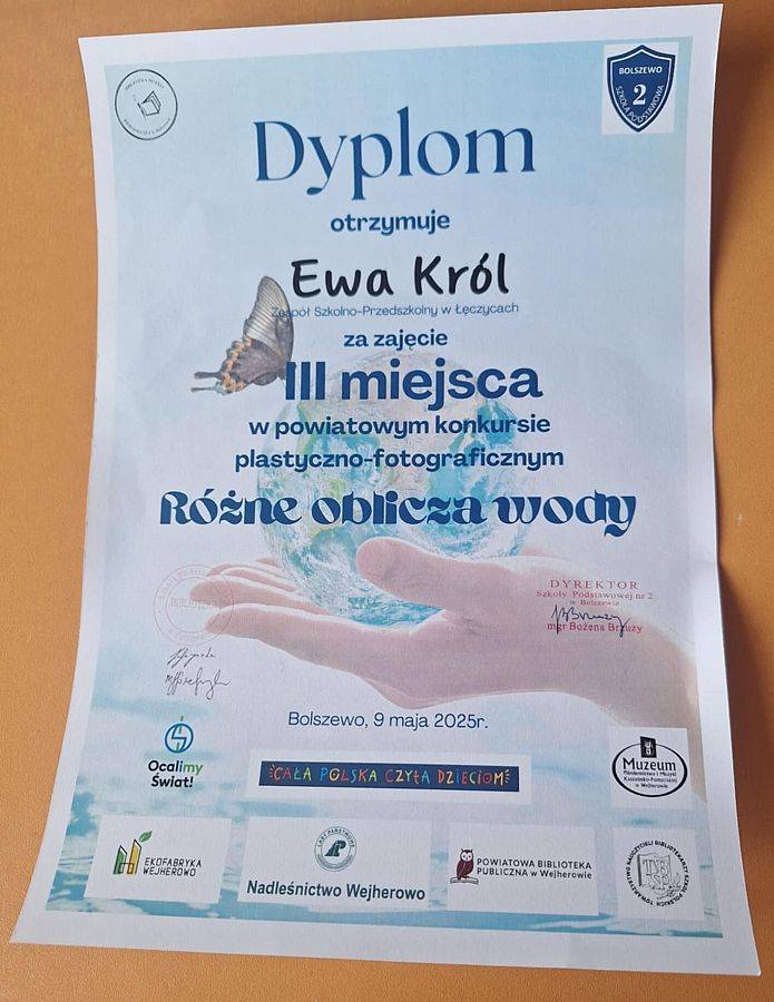 W powiatowym konkursie plastyczno-fotograficznym "Różne oblicza wody", organizowanym przez Bibliotekę Szkolną „Bibliotekę Motyli” SP nr 2 w Bolszewie, w którym wzięło udział 63 uczestników: