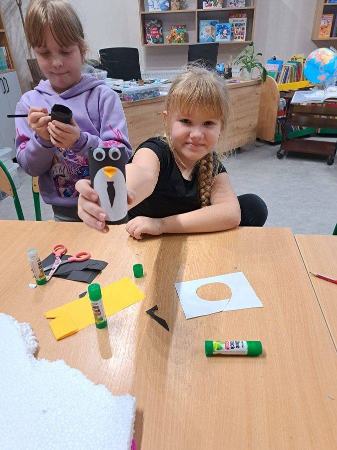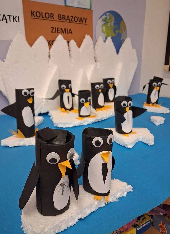 Wspólnie omówiliśmy plan wydarzeń, a następnie dzieci wykonały papierowe pingwinki oraz stworzyły stację badawczą na Antarktydzie.
