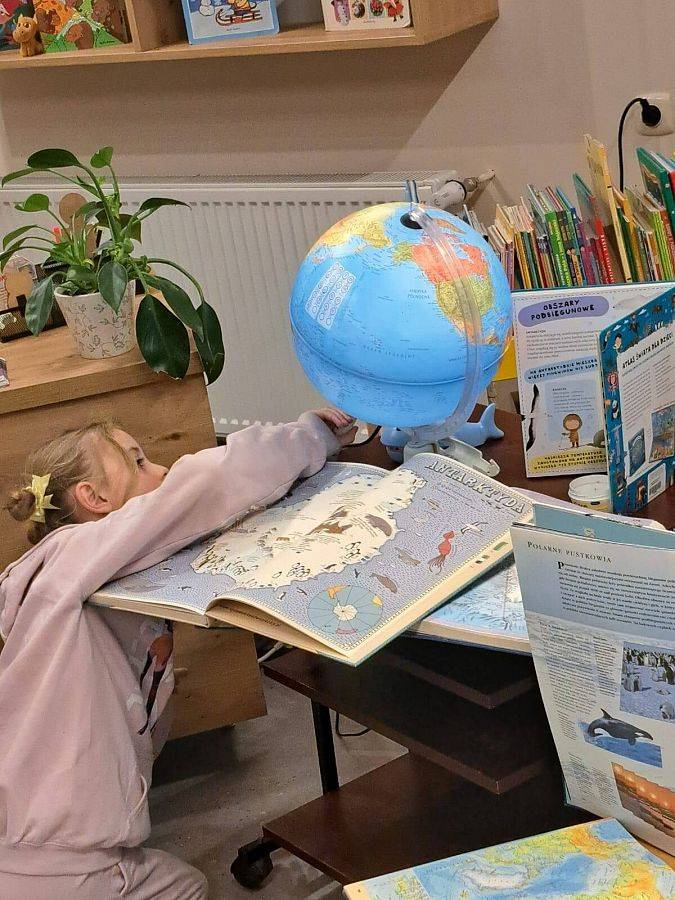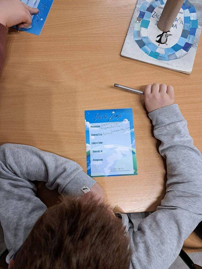 Tym razem rozmawialiśmy o świecie i jego naturze, o symbolice koloru brązowego i białego. Podczas spotkania w bibliotece dzieci pisały listy do Ziemi, ucząc się troski o naszą planetę. Na podstawie przeczytanej książki „Zaczarowana zagroda” omówiliśmy także kolor biały - jego znaczenie i skojarzenia, szczególnie w kontekście przyrody i Antarktydy.