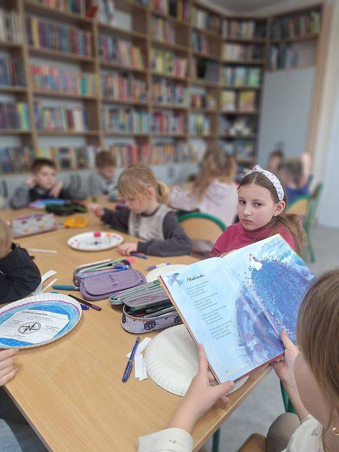 Dziś w bibliotece, odbyły się kolejne zajęcia dla klasy 2a w ramach projektu „Zaczytani w kolorach”, realizowany we współpracy z Gminną Biblioteką Publiczną.