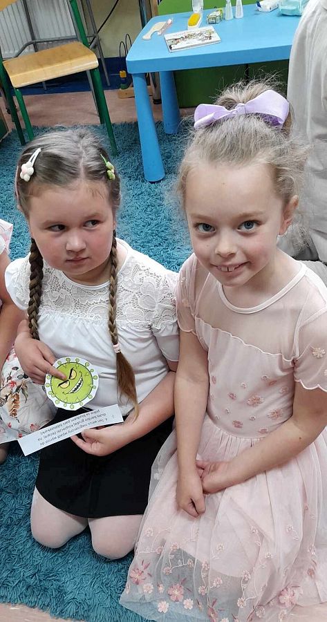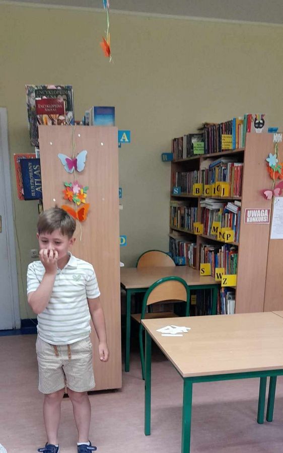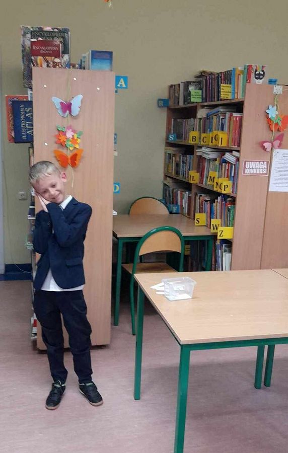 W ramach projektu "Zdrowe przygody Filipa" uczniowie z klasy 1A zrealizowali kolejny moduł. Tym razem przeczytaliśmy książkę "Filip i najazd intruzów", która opowiadała o zachowaniu higieny i dbaniu o czystość. Po lekturze dzieci miały okazję zagrać w kalambury, pokazując różne czynności higieniczne. Dodatkowo uczniowie poszukiwali wirusów i bakterii w bibliotece, rozwiązując przy tym ciekawe zagadki. Na koniec otrzymali tematyczne kolorowanki. Było to kolejne pełne emocji i nauki spotkanie, które przypomniało dzieciom, jak ważna jest higiena i dbanie o zdrowie.