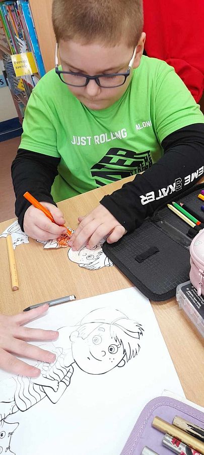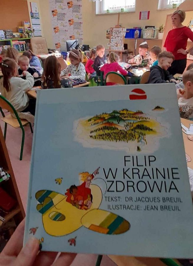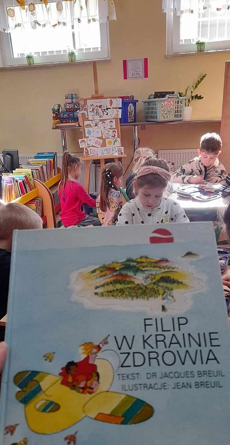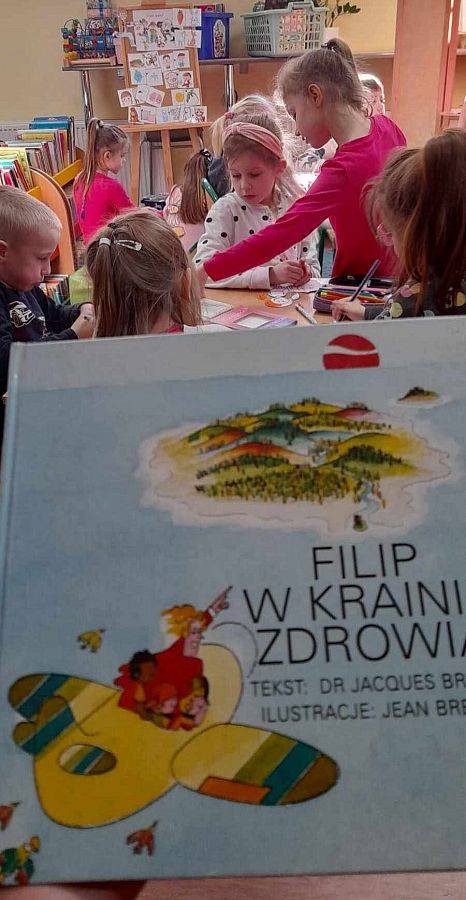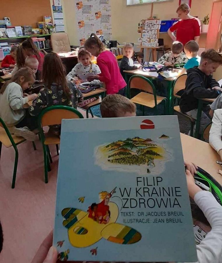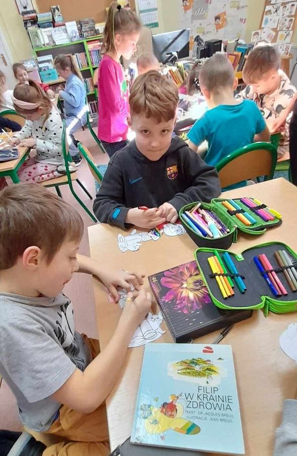 W bibliotece miały miejsce inspirujące warsztaty z innowacji pedagogicznej o nazwie "Zdrowe przygody Filipa". W trakcie tych zajęć dzieci z klasy 1A mogły zapoznać się z fascynującymi przygodami Filipa i jego przyjaciół, opisanymi w książce "Filip w krainie zdrowia", które wspaniale przybliżyła im pani Lidka. Po lekturze, maluchy utrwalały treść poprzez zabawę w grę memory. Następnie, kreatywnie tworzyły pacynki przedstawiające bohaterów książki, aby podczas kolejnych spotkań móc bawić się w teatrzyk. Takie zajęcia nie tylko rozwijają wyobraźnię i kreatywność dzieci, ale również promują zdrowy tryb życia i wartościowe treści literackie.