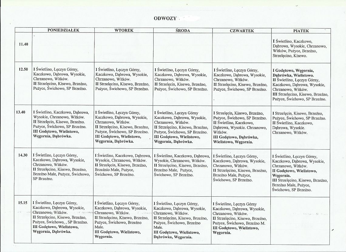 Przywozy i odwozy w dniach 14, 15, 16.05.2024r.