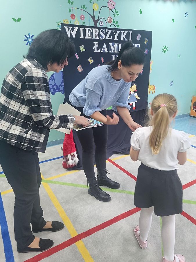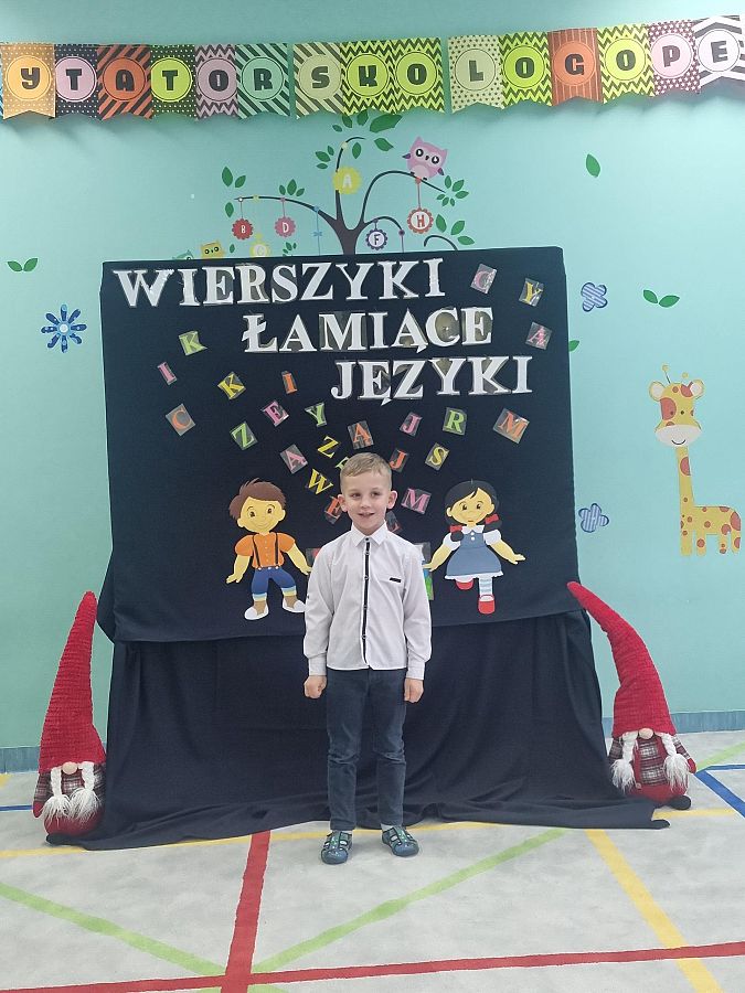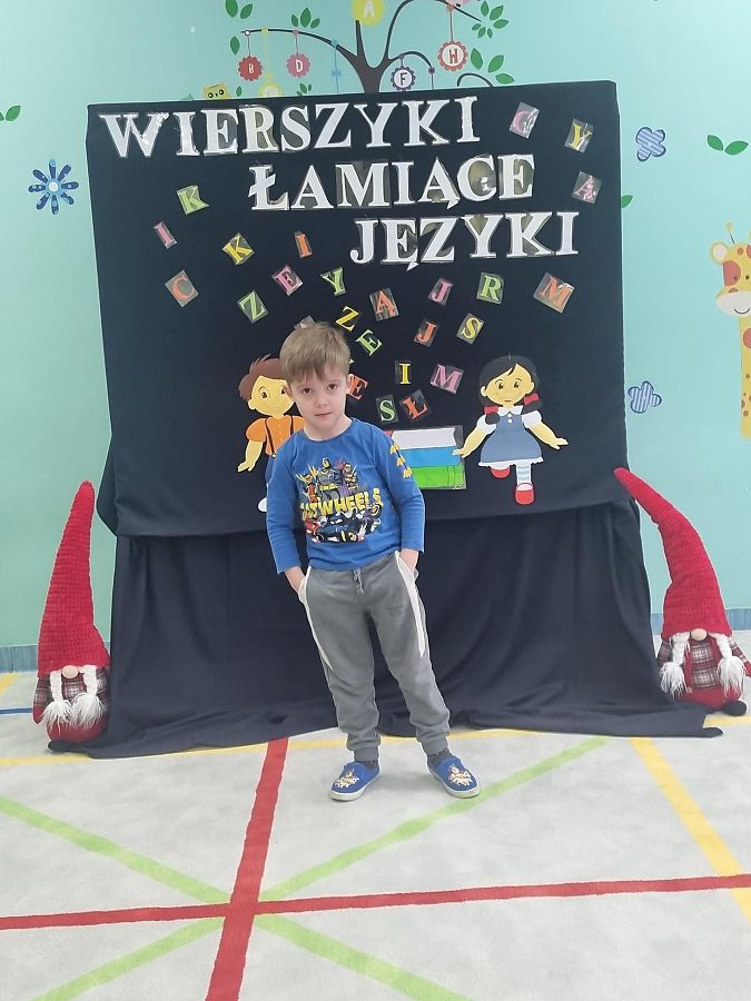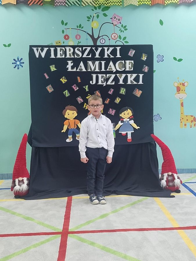 Dnia 16.12.2025 roku w Zespole Szkolno-Przedszkolnym został przeprowadzony Piąty Konkurs Recytatorsko-Logopedyczny „ Wierszyki łamiące języki”. Konkurs był skierowany do przedszkolaków pięcioletnich i sześcioletnich. W konkursie wzięło udział 12 dzieci pięcioletnich i sześcioletnich. Przedszkolaki z dużym zaangażowaniem, starannością oraz doskonałym wyrazem artystycznym zaprezentowały wybrane wierszyki.