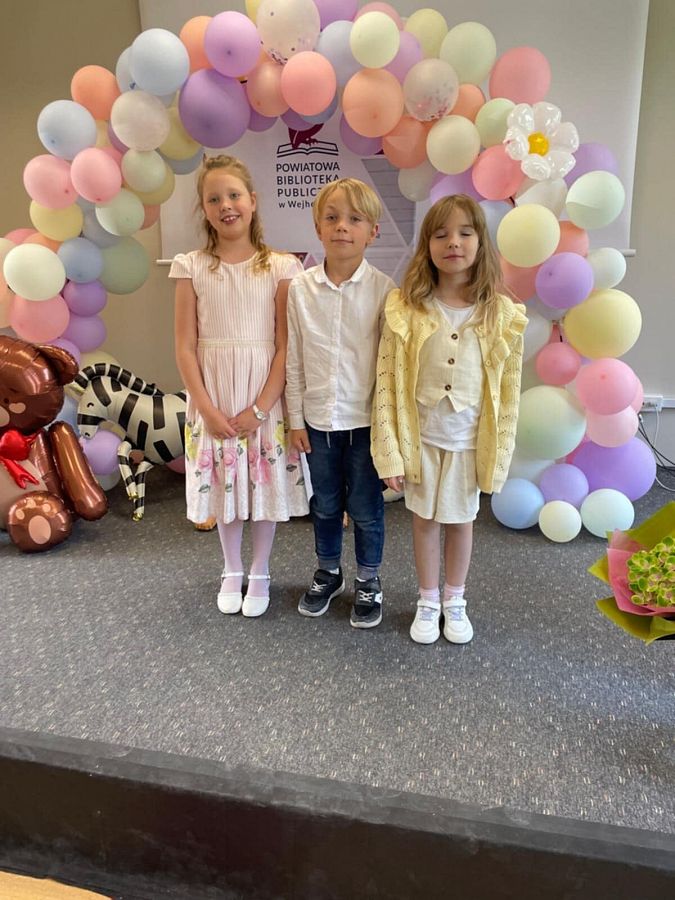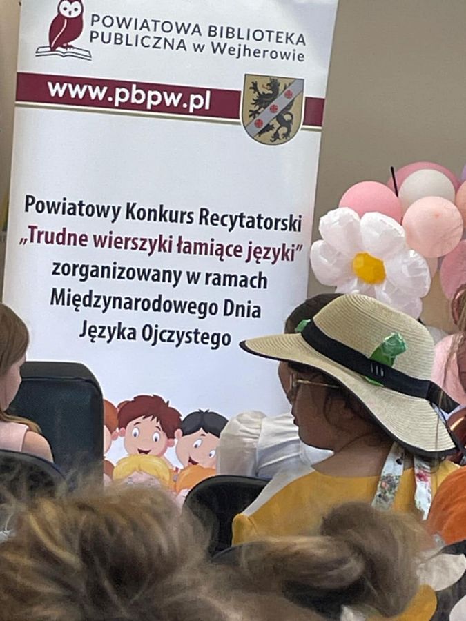 Uczniowie naszej szkoły — Asia Laskowska, Ewa Król i Szymon Koral — godnie reprezentowali naszą szkołę podczas VIII edycji Powiatowego Konkursu Recytatorskiego „Trudne wierszyki łamiące języki”, zorganizowanego przez Powiatową Bibliotekę Publiczną w Wejherowie. Konkurs odbył się w 5 czerwca i był skierowany uczniów klas I–II szkół podstawowych.